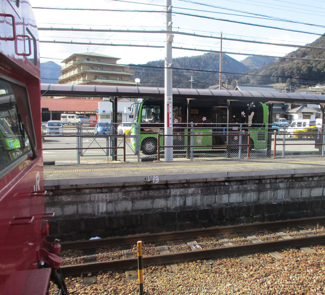 【神河町】昭和生まれの電車とポンチョ。寺前駅にて。2025年3月撮影。